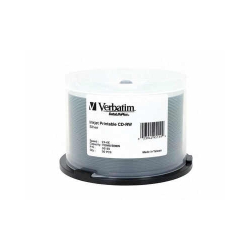 With a silver inkjet printable surface qualified for high-resolution photo quality disc printing, verbatim datalifeplus silver inkjet printable CD-RW discs provide exceptional printing and recording performance on CD/DVD inkjet printers and duplicators. Verbatim CDRW set the standard for performance, compatibility, and reliability.