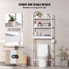 路 Compatible with Most Toilets: Our frame design can accommodate various types of toilets. This over the toilet storage rack measures 24.8" x 10.2" x 66.9" (630 x 260 x 1700 mm), making it suitable for limited bathroom spaces. The bottom crossbar can be adjusted to 3.4" (85 mm) or 6.2" (158 mm) from the floor, ensuring it doesn't block pipes. The bottom shelf is 38.6" (980 mm) above the ground, allowing the toilet lid to open fully and move freely.