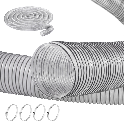 VEVOR 4'' x 50' Dust Collection Hose, Thickened PVC Material Puncture-Resistant Flexible Clear Hose with Carbon Steel Wire Coil 4 x 304 Stainless Clamps, for Table Saw, Band Saw