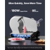 Cut through your kitchen tasks in no time with our powerful frozen meat slicer. Equipped with a 180W motor and a smooth 95 RPM speed, it effortlessly slices through meats, cheeses, breads, and veggies. Say goodbye to long prep times and hello to quick, easy, and uniform slices every time.