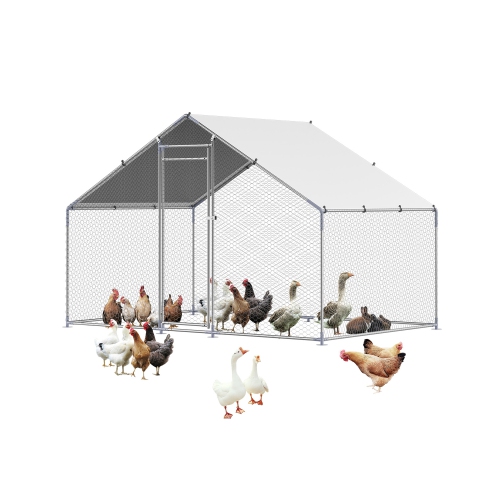 路 Spacious Living Area: Offering a generous 9.84x6.56x6.56ft/3x2x2m of space, this large metal chicken coop features four-sided ventilation, creating a healthy and comfortable environment. The PE-coated canopy provides sun protection, waterproofing, and tear resistance, shielding your poultry from external elements.