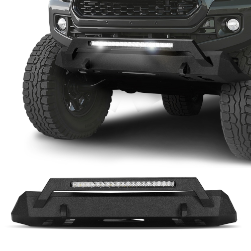 VEVOR Front Bumper Compatible with 2016-2023 Toyota Tacoma, Pickup Truck Bumper with LED Light Bar, Winch Plate & D-Rings Mounts, Heavy-Duty Steel Front Bumper with E-Coating