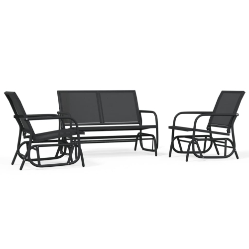 vidaXL 3 Piece Garden Glider Lounge Set Black Textilene and Steel