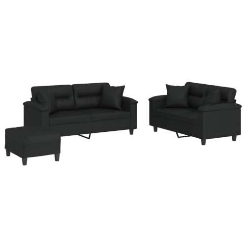 vidaXL 3 Piece Sofa Set with Pillows Black Faux Leather