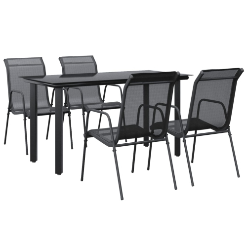 vidaXL 5 Piece Garden Dining Set Black Steel and Textilene
