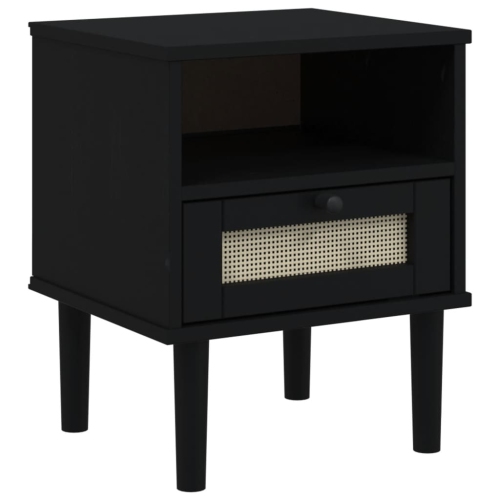 vidaXL Bedside Cabinet SENJA Rattan Look Black 40x35x48 cm Solid Wood Pine