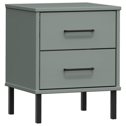 vidaXL Bedside Cabinet with Metal Legs Grey Solid Wood Pine OSLO