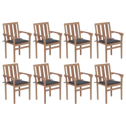 vidaXL Stackable Patio Chairs with Cushions 8 pcs Solid Teak Wood