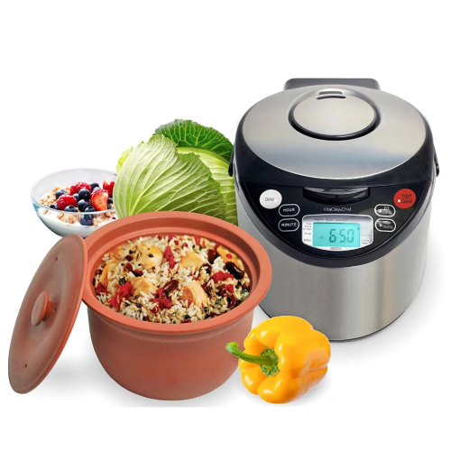 • It is 4-in-1, a rice cooker, slow cooker, digital steamer and low-temperature artisan yogurt maker.• Natural, unglazed, highly prized Zisha clay enhances flavors and preserves important nutrients, enzymes, and vitamins in savory soups, hearty stews, grains and legumes.• Up to 4 times faster than conventional slow cooker• Makes probiotic rich Greek yogurt or yogurt or yogurt cheese• Preserves important nutrients, enzymes and vitamins