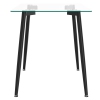 Dimensions of fully assembled product L x W x H:47.25 x 27.50 x 29.5.Compact design perfect for smaller spaces.8mm clear, tempered glass top.Black metal legs.Brushed stainless steel glass holders.Mix and match with a variety of chair styles.