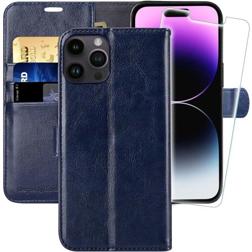 Compatibility & Convenience Design:for iPhone 14 Pro 6.1 inch,Holds an iPhone 14 Pro, 3 credit & ID cards and up to 4 bills and Free tempered glass screen protector included.Precise Craft & Perfect Design:Our handmade phone case is crafted with premium leather,Covers 360°bezels protection of your iPhone and includes raised sides to prevent screen scratches and any other daily wear,Ultra-strong magnetic closure provides security & peaceful mind.Durable Material:Dual layer