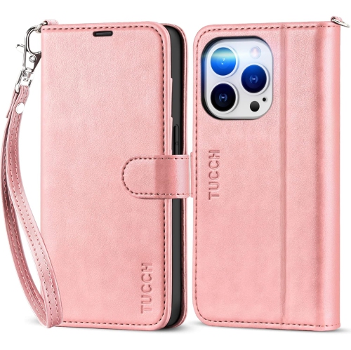Wallet Case for iPhone 14 Pro 6.1-inch 5G, RFID Blocking 4 Card Slots Magnetic Lanyard [Wriststrap], Stand PU