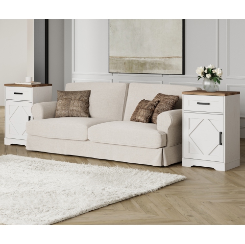 WAMPAT 2 Pack End Table with 1 Drawer & Door, Farmhouse Large Sofa Side Table, Modern Tall Nightstand with Adjustable Storage Shelf, Accent Cabinet for Living Room,Antique White