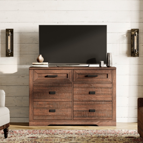 WAMPAT Farmhouse TV Stand for up to 55 inch TV,Wooden Dresser with 6 Drawers,Modern Entertainment Center 47.2" TV Console Table for Living Room,Bedroom,Brown