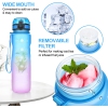 About this item•[Stylish Gradient-Color and Lightweight] It comes with the gradient colors, which could evoke more attention than dull colors. The motivational water bottle has motivational quotes, measuring scale and time marking imprints on it to remind you to continue and reach your hydration goals. The frosted bottle makes it comfortable to hold and the handy strap makes it convenient for everyday carrying.•[Elaborate and Functional Designs] Double leak-proof design i