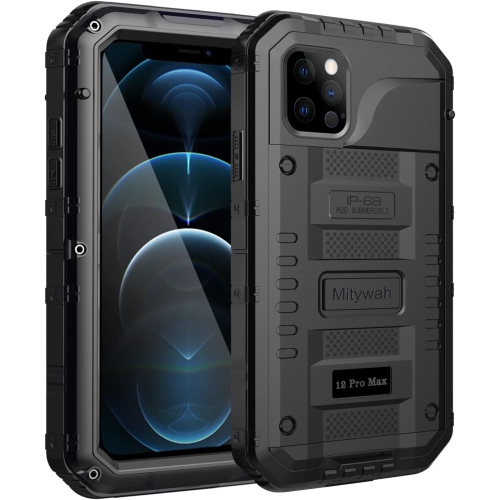 iPhone 12 Pro Max Case Men Strong Metal case compatible with iPhone 12 pro max 6.7 Inches only.iPhone 12 Pro Max Waterproof Case Fully submersible to 6.6'/2 m for 1 hour - meets IP-68 Ingress Protection Rating.Military Grade Drop Tested Case for iPhone 12 Pro Max Premium 3 layers shockproof case provides advanced shock-absorption protection for iPhone 12 pro max, withstands drops from 6.6'/2 m high-Anti-drop , tough, rugged and indestructible.Heavy Duty Full Dody Case iP