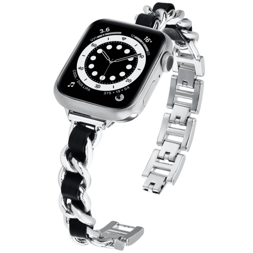 Worryfree Gadgets Slim Metal and Leather Adjustable Band Compatible with Apple Watch Band Series 9 8 7 6 SE 5 4 3 2 1