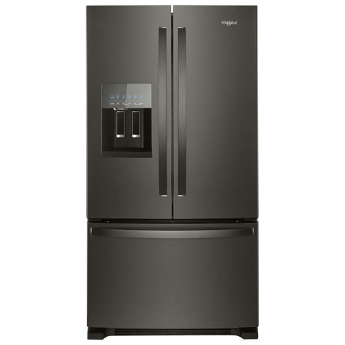 With a convenient external ice & water dispenser and stylish, fingerprint-resistant design, this 24.7 cu. ft. French door refrigerator from Whirlpool is perfect for the modern kitchen. It features a humidity-controlled double crisper, and a 2-tier freezer for ample frozen food storage and organization. Spillproof shelves contain leaks for easy cleanup.Whirlpool 36" French Door Refrigerator (WRF555SDHV) - Black Stainless - Open Box - Scratch & Dent