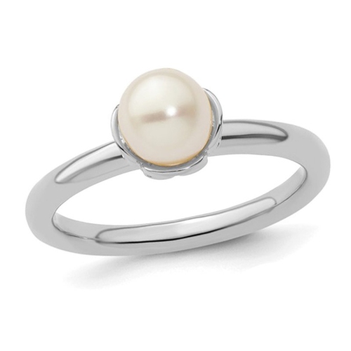 White Freshwater Cultured Pearl (6.5mm) Ring in Sterling Silver