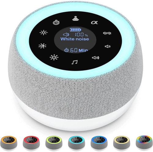 ·♫【7 Colors Night Light & 3 Adjustable Brightness Levels】The white noise machine has 7 colors of lights, there is no need to get up in the dark at night, and it is easy to illuminate when the baby needs to breastfeed or change diapers. The light