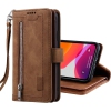 WillCase Leather Wallet Magnetic Case Shockproof Leather Zipper Flip Cover Credit Card Holder with 9 Card Slots for iPhone 14 (Brown) - Free Shipping