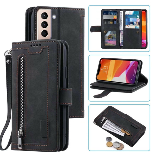WillCase Wallet Leather Magnetic Case Shockproof Leather Zipper Flip Cover Credit Card Holder for Samsung Galaxy S22 Plus (Black) - Free Shipping