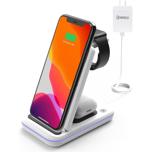 Wireless Charging Station, 3 in 1 Wireless Fast Charger Stand for iPhone 16/15/14/13/12/11/Pro/Max/XS/XR/X/8/Plus, for Apple Watch Ultra 8/7/6/5/4/3/2/SE, for AirPods 3/2/Pro