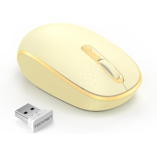 Wireless Mouse, 2.4G Quiet Computer Mouse with USB Receiver, 4 Buttons Portable Cordless Mice for Laptop, PC, Yellow