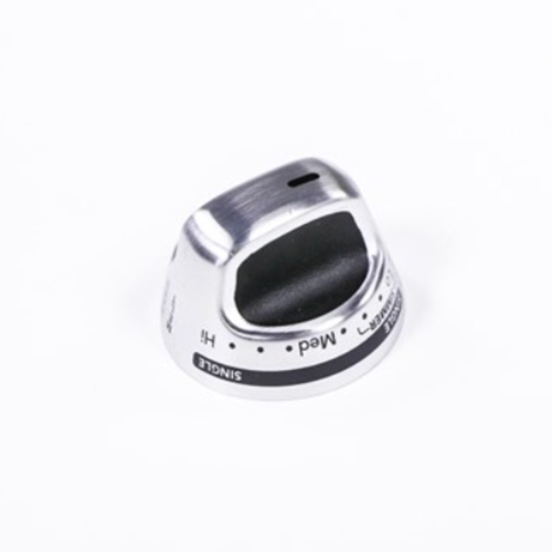 OEM Whirlpool Product.WPW10156260 OEM Whirlpool Range Burner Control Knob is stainless in colour.