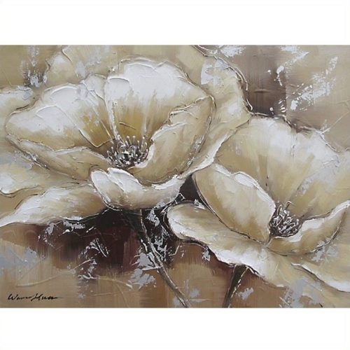 The pale earth tones used in this elegant piece are accented by the unique texture found in the painting. The flowers fade smoothly from a brown tone out to white while the negative space consists of a blend of darker brown tones.Features:Original hand painted wall artAcrylic paintingWall mountedReady to hang out of the boxInner wood frame wrapped with the canvasCotton CanvasItem will arrive flat and boxedPai...