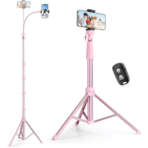 YOULIGHTS 88" Phone Tripod & Selfie Stick, Extendable Cell Phone Tripod Stand with Wireless Remote and Phone Holder, Pink