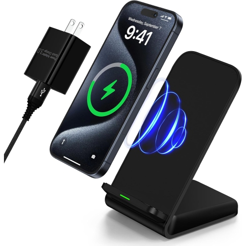 YOULIGHTS Wireless Charger Fast Charging Stand Desk Phone Charger Stand Android Charging Station with Adapter (Black)