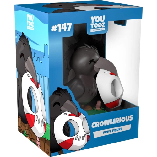 Discover the mystery with the Crowlirious Youtooz collectible!Inspired by the iconic crow from H2ODelirious’ videos, Crowlirious swoops into Youtooz form with charm and mystery. Standing 3.6 inches tall, this detailed figure perches atop a muddy mound covered in lush green grass. Instead of finding the worm he was searching for, Crowlirious uncovers H2O’s discarded mask—hollow, with empty eye sockets and bold red prints on the front. His sculpted two-tone brown feet with