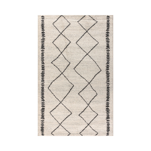 Inspired by vintage Beni Ourain Moroccan rugs, our modern version is power-loomed with a short pile. Diamonds and geometric forms are woven in black on a field of ivory; the mingled threads recall traditional handwoven rugs. Add some Bohemian style to your home with this easy-care rug.