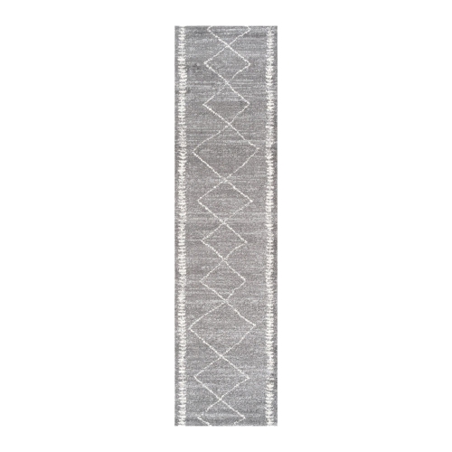 Inspired by vintage Beni Ourain Moroccan rugs, our modern version is power-loomed with a short pile. Diamonds and geometric forms are woven in ivory on a field of gray; the mingled threads recall traditional handwoven rugs. Add some Bohemian style to your home with this easy-care rug.