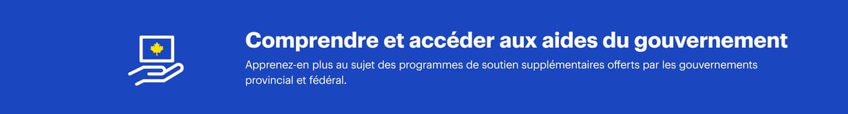Vous trouverez ci-dessous des aides offertes par le gouvernement canadien. Vous ou votre famille pourriez être admissibles à ces aides en fonction de votre situation personnelle.