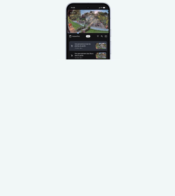 Les caméras et les sonnettes Google vous aident à voir plus avec des vidéos 2K et une alimentation constante¹ ².Et avec Gemini et un forfait avancé Google Home Premium, votre caméra ou votre sonnette sait ce qu'il faut surveiller et ce qu'il faut faire ensuite³.