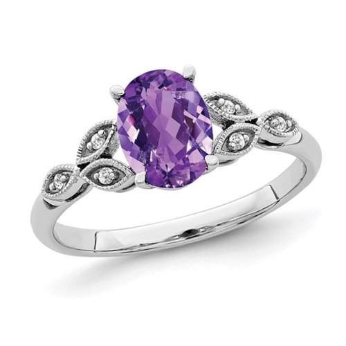 1,10 carat (CTW) Anneau d'am??thyste de coupe ovale en or blanc 14K