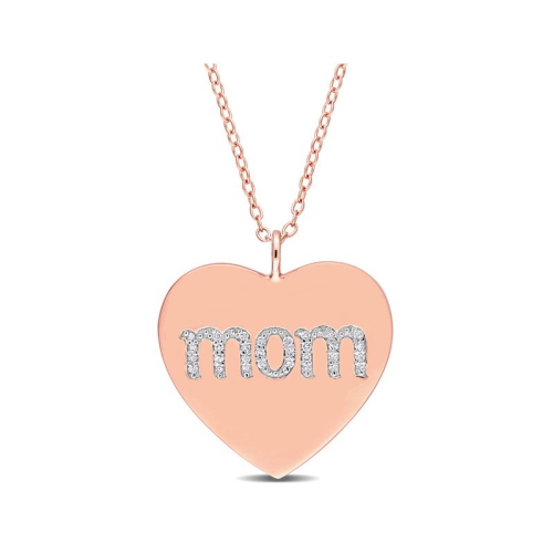 1/10 carat (ctw) Diamond Heart Mom Pendant Collier en argent sterling jaune plaqu?? avec cha?«ne