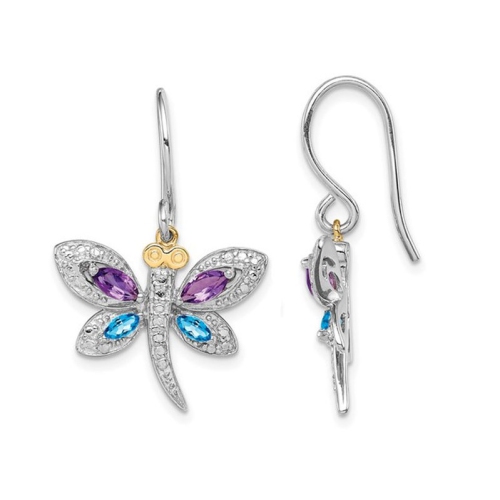 1.50 carat – Boucles d'oreilles libellules, améthyste et topaze bleue, argent sterling