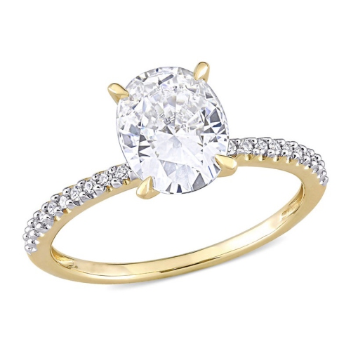 2.00 Carat (CTW) Created Moissanite Ovale Moissanite Solitaire Bague de fiançailles 14K Jaune Or avec diamants