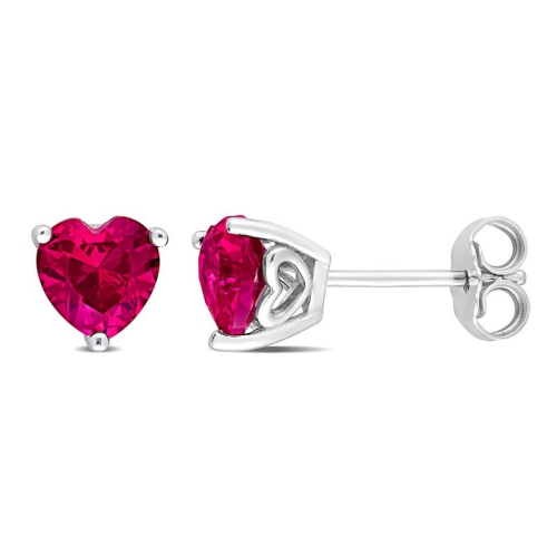 2,00 carats (CTW) Boucles d'oreilles Ruby Solitaire cr????es en laboratoire en argent sterling (8 mm)
