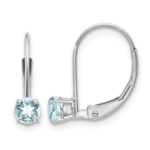 De belles pierres précieuses en forme d'aquamarine en forme de ronde brillante 2/5 carat (CTW) La pierre de naissance pour mars sont placées en or blanc de 14 karat en or blanc de Karat dans ces boucles d'oreilles cercles de levier.