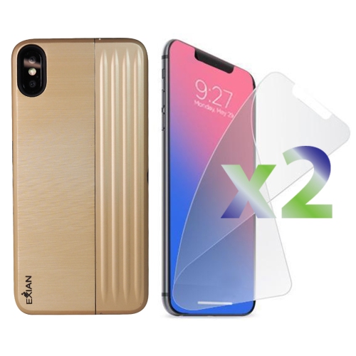 2 protecteurs d’écran iPhone XS Max d’Exian avec étui protecteur, support et fente pour carte doré