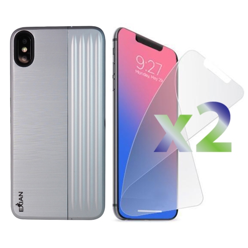 2 protecteurs d’écran iPhone XS Max d’Exian et étui avec support et fente pour carte argenté