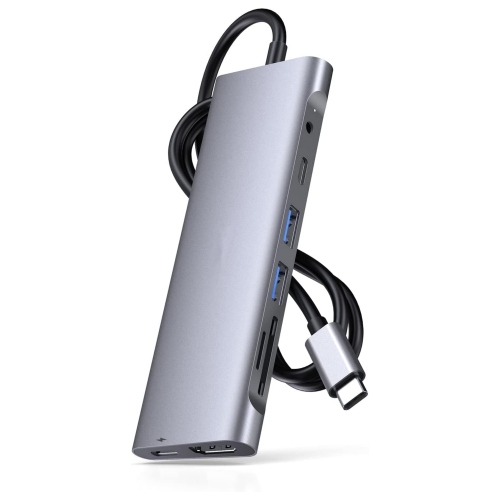 3.3FT Long Cable USB C Hub with 4K HDMI, 2 USB 3.0, Card Reader, Aux, Type C Data/Charging Compatible 2024-2016 MacBook Pro, Mac Air/Surface, Stable Driver Adapter, Space Gray