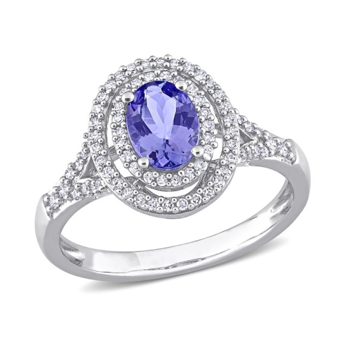 3/4 carat (CTW) Tanzanite Double Halo Anneau en or blanc 10k avec diamants