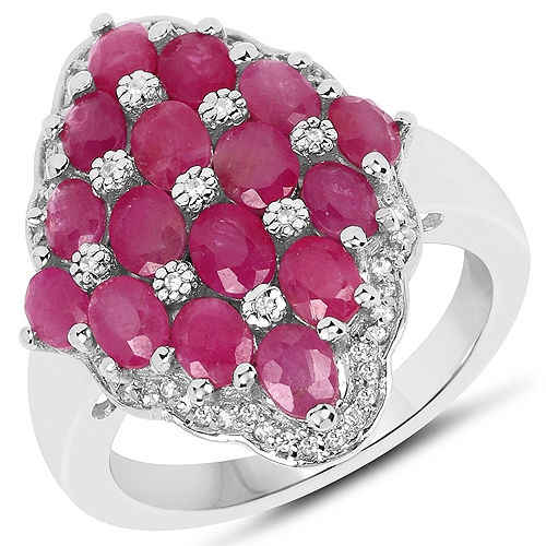 3.80 carat Bague .925 en argent sterling, rubis et zircon blanc