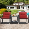 3PCS Ensemble d’une table et de fauteuil à bascule en rotin avec coussins de marque Gymax