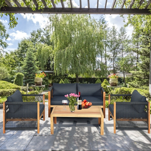 4PCS Ensemble de mobilier en bois d'acacia pour l'extérieur avec coussins Gymax